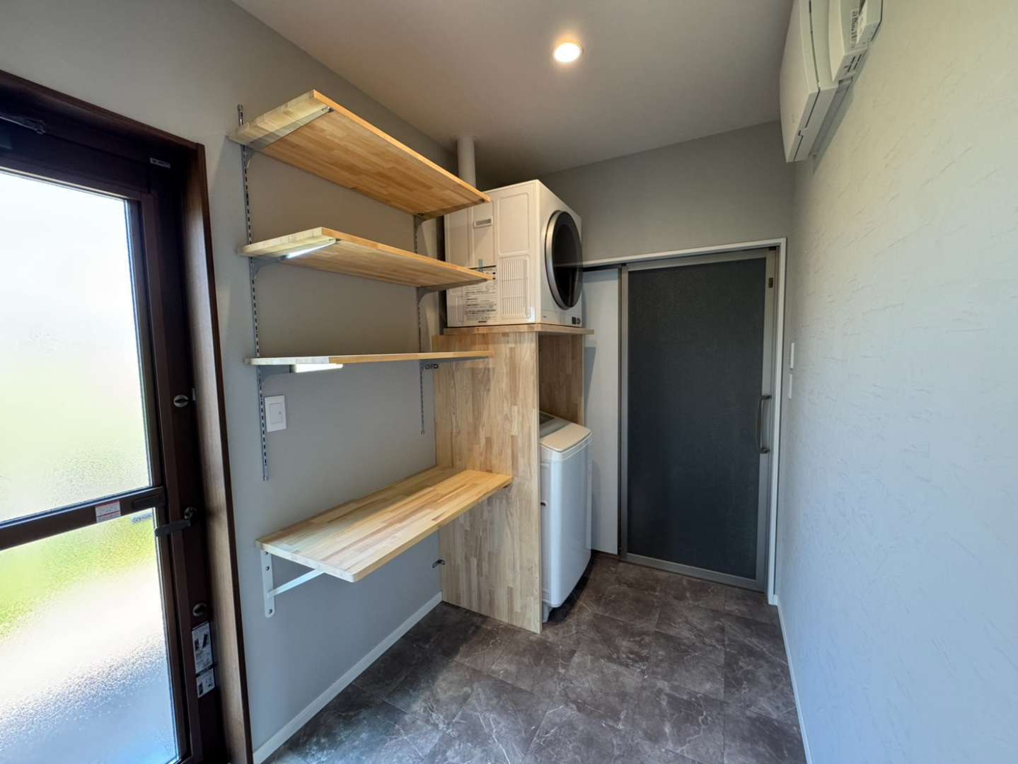 【提案・施工内容】 施主様との綿密な打ち合わせを重ね、ご家族のライフスタイルに寄り添った間取りをご提案いたしました。 LDKは南面に大きな窓を設け、光がたっぷりと差し込む、広々とした一体感のある空間を実現。リビング階段を採用し、家族が自然と顔を合わせる機会が増えるよう工夫しました。 家事動線については、キッチンからパントリー、洗面脱衣室、そしてそのまま外の物干しスペースへとつながる「回遊動線」を採用。日々の家事負担を軽減できるよう配慮いたしました。 収納面では、玄関のシューズクロークや各居室のクローゼットに加え、階段下なども有効活用し、充実した収納スペースを確保しました。